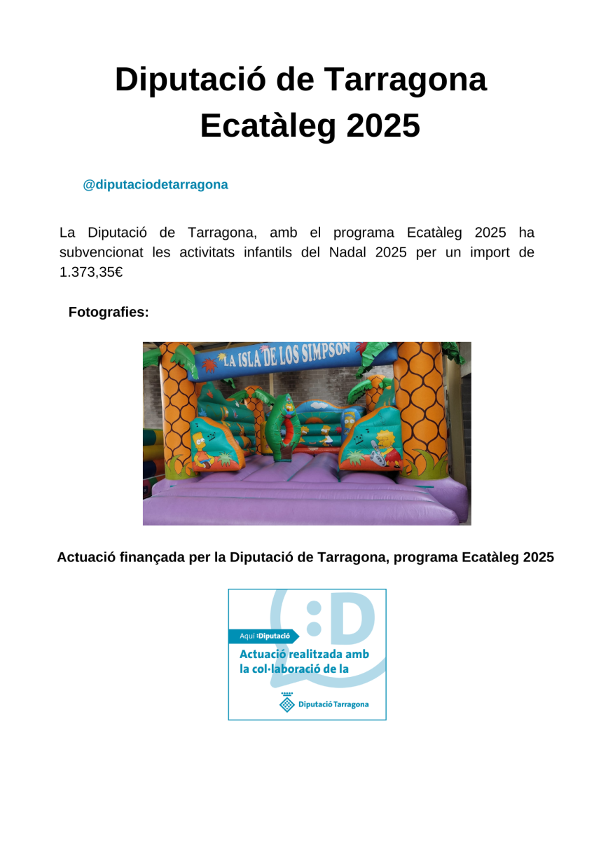 Subvenció Diputació de Tarragona 1.200,00€ per Parc Infantil.